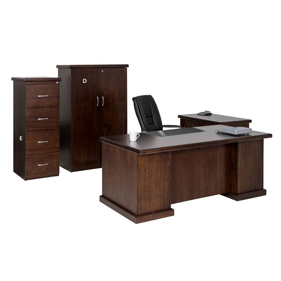 A traditional Mahogany Veneer Desking Range featuring Selective Veneers & Timber.