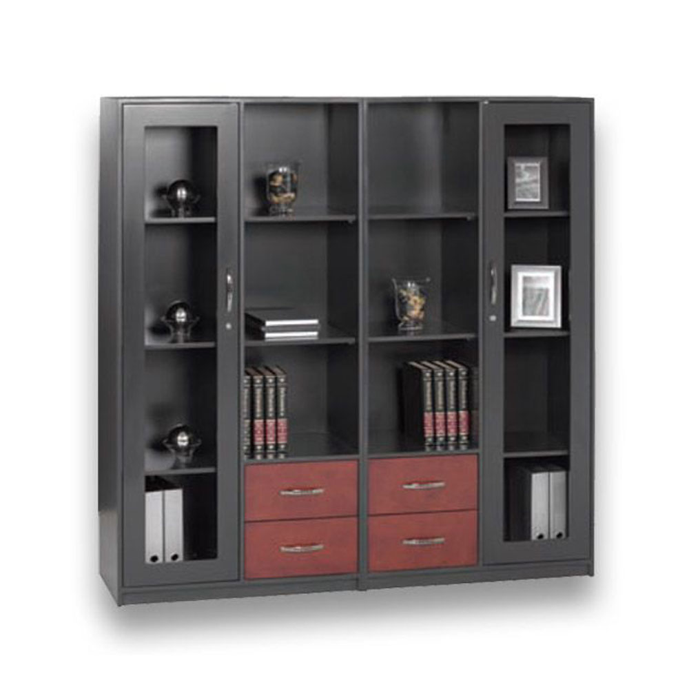 2 x 1800h x 900w x 450d Hinge Glass door and open bookcase /Â 2 Drawer units